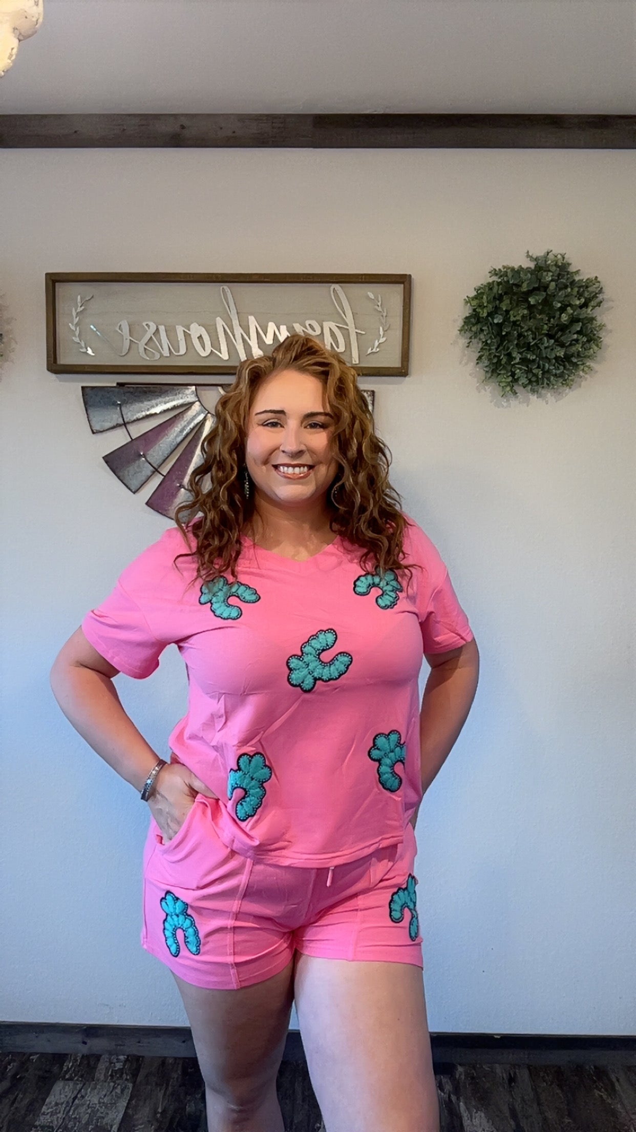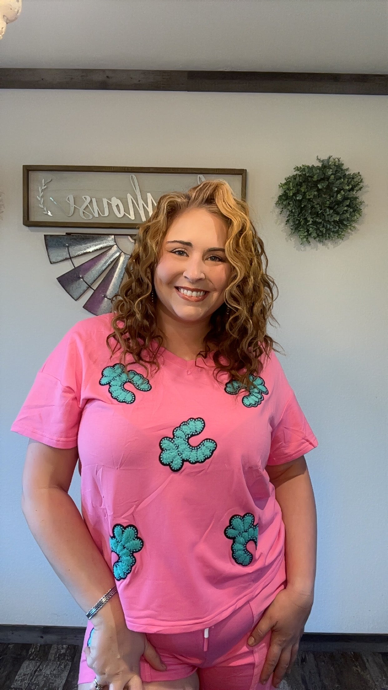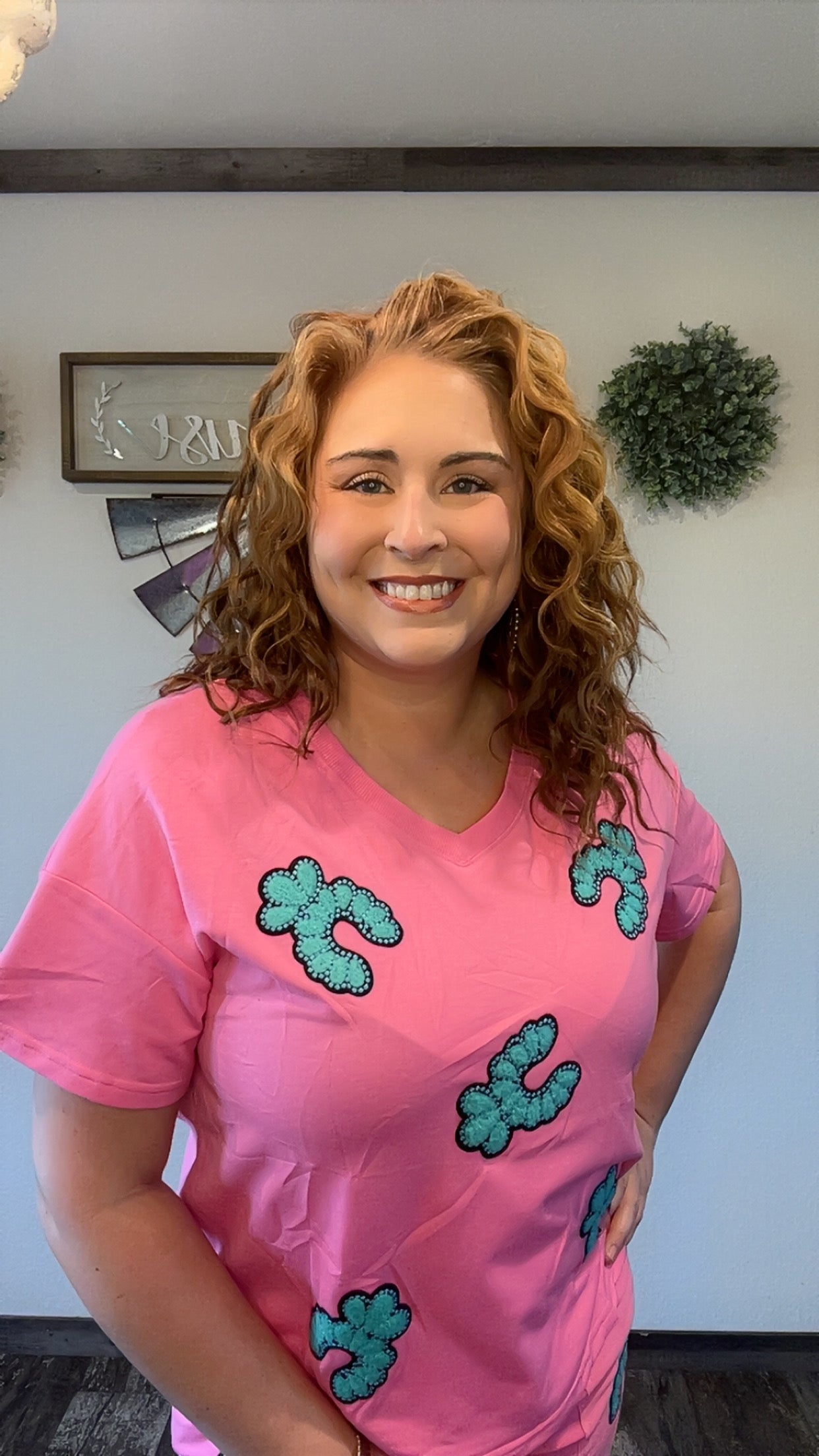Perfect for wearing out to run errands and also comfortable enough to lounge around in at home. The turquoise patches add that little western punchy flare. Patches on front only.